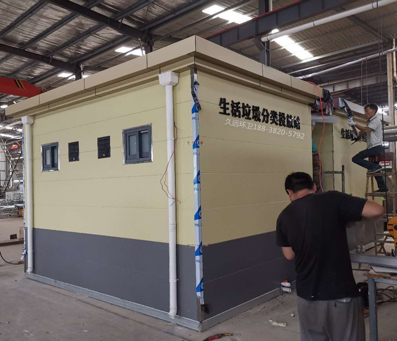 生活垃圾分類投放站廠家定制——久遠環(huán)衛(wèi)是一家集研發(fā)生產、銷售服務為一體的大型環(huán)衛(wèi)設備生產企業(yè),公司注冊資金5000萬元,占地面積50余畝,擁有現(xiàn)代化生產車間1萬余平方米,辦公面積1000余平方米,在職員工200多人,具有雄厚的技術及生產實力。 公司主要生產垃圾壓縮中轉站、垃圾分類收集房、環(huán)保移動公廁、各類垃圾桶果皮箱、環(huán)衛(wèi)工具箱、環(huán)衛(wèi)道班房、崗亭、休閑座椅、等公共環(huán)衛(wèi)設施。