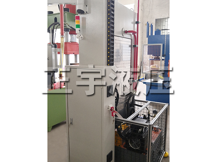 2、主缸為活塞式油缸,內設快速缸,可實現高速下行,慢速壓制動作。 提高生產效率。油缸為上油缸式,沖壓滑塊工作時從上往下壓制,下模靜止,上模壓制。